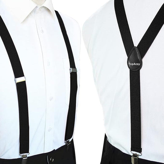 Topacsy Solid Color Mens Suspender with 3 Strong Clips Adjustable Braces