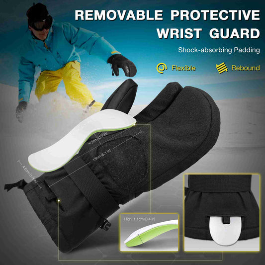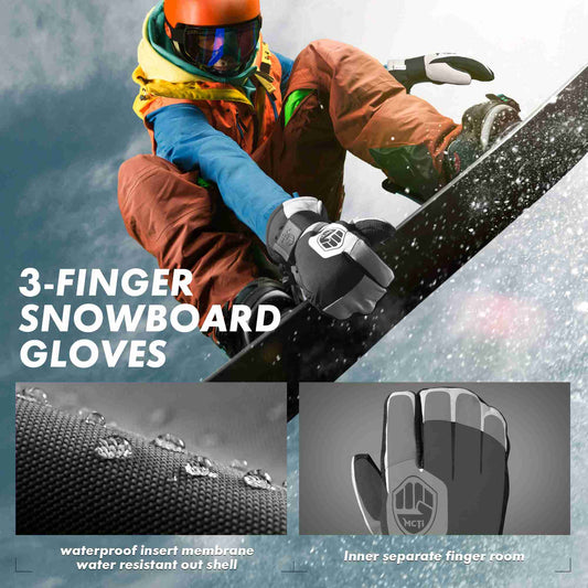 MCTi Snowboard Gloves with Wrist Guard 3-Finger Waterproof Mittens for Winter Snow Skiing