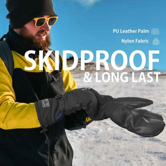 EXski Waterproof 3-Finger Ski Gloves - Warm & Insulated for Snowboarding & Snowmobiling