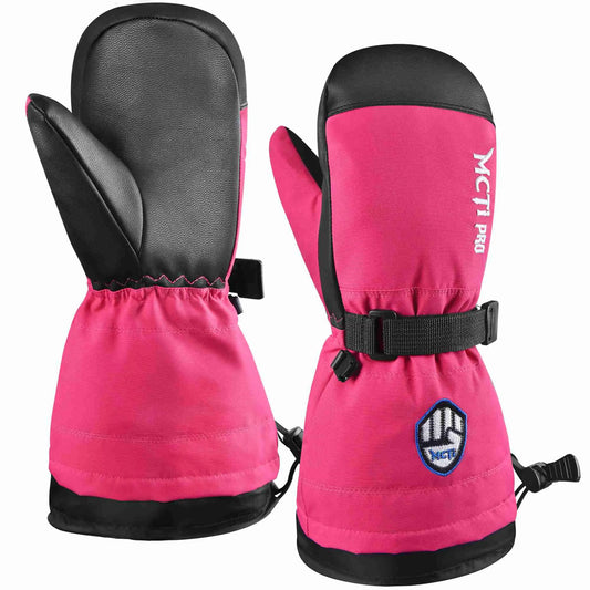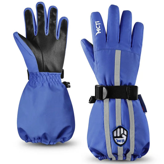 MCTi Kids Gloves Waterproof Winter Warm Snow Ski Gloves Long Cuff Fleece Lined with Reflective Strap