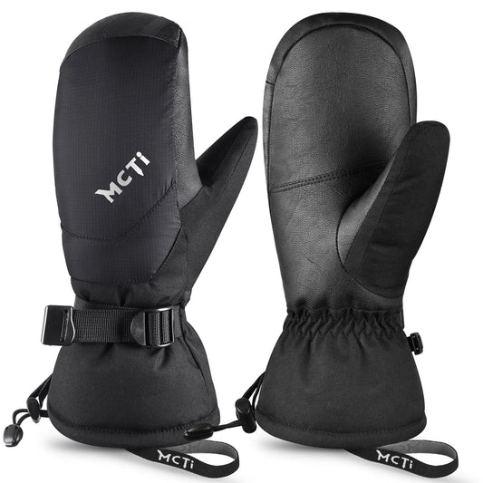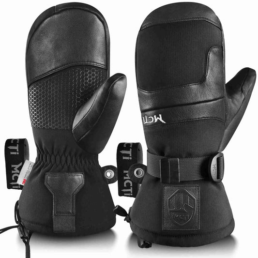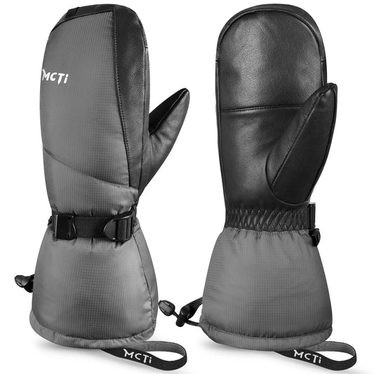 MCTi Ski Mittens Leather Mitten Winter Cold Weather Waterproof Snow Mitt for Men
