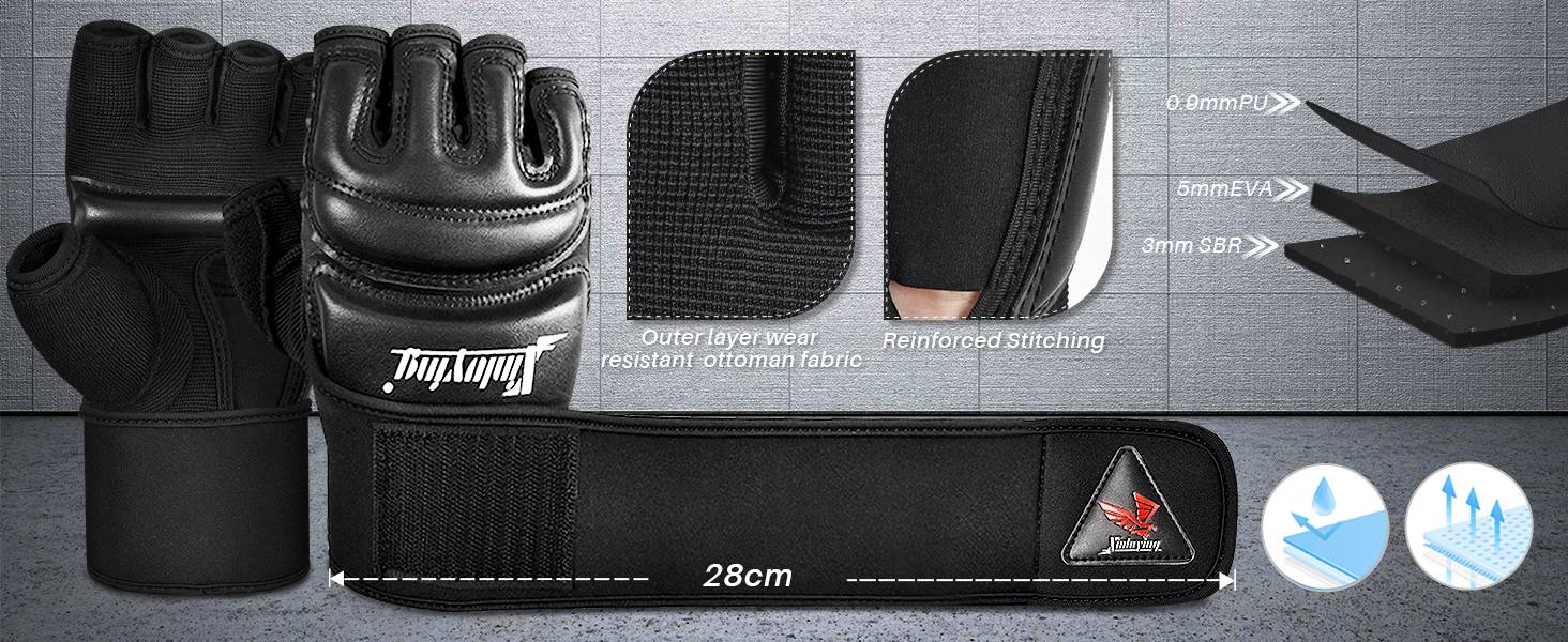 - Enhanced Impact Padding : The 3mm SBR covers the entire back of the hand, increasing the shock absorption and comfort of the gloves, the fist peak is filled with 5mm EVA, and the thickness of the knuckle part of the pad is thickened from the original 5mm to 8mm, improving the protection and shock absorption of the opponent and the fist, which is more suitable for the mma with longer and stronger punching power. The version is more comfortable, light and fit the hand.