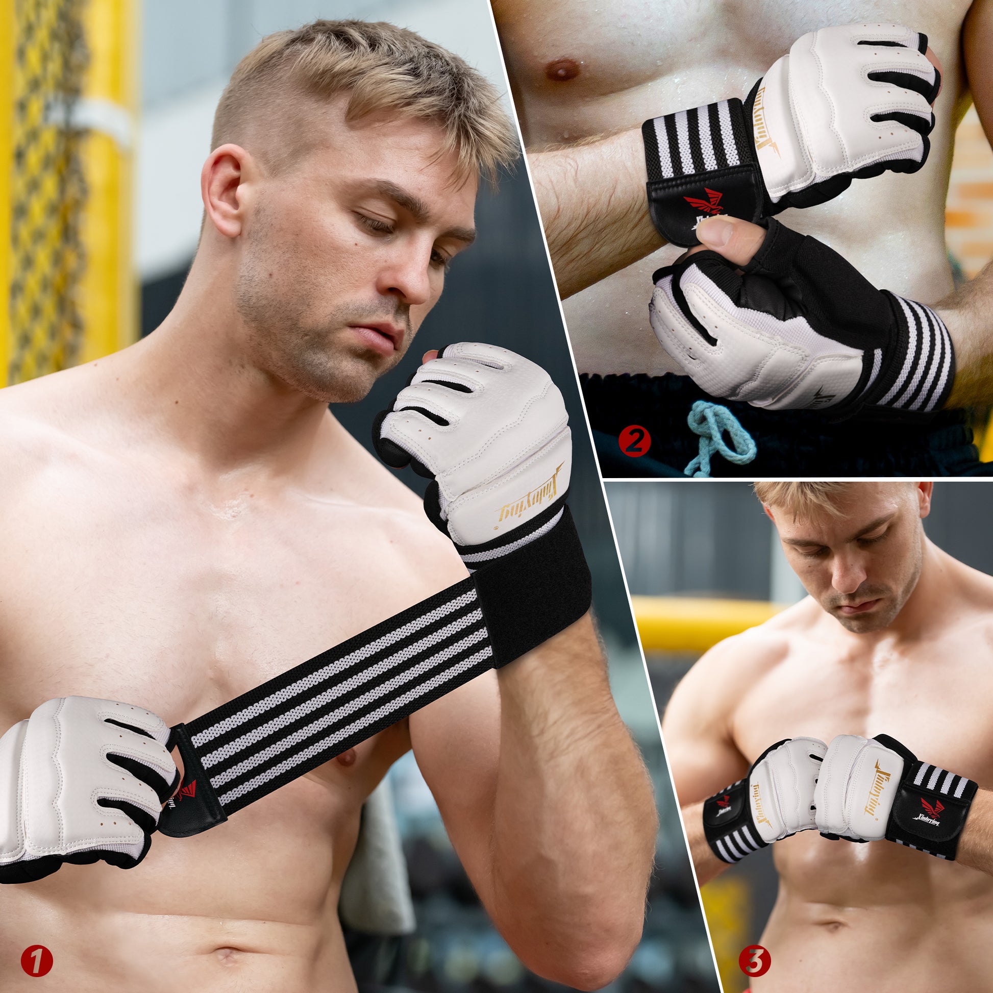 Xinluying Punch Bag MMA Gloves Half Finger Adjustable Mitts Wrist Support Boxing Gloves Open Palms for Sparring Martial Arts Taekwondo Punching Bag Training for Men Women